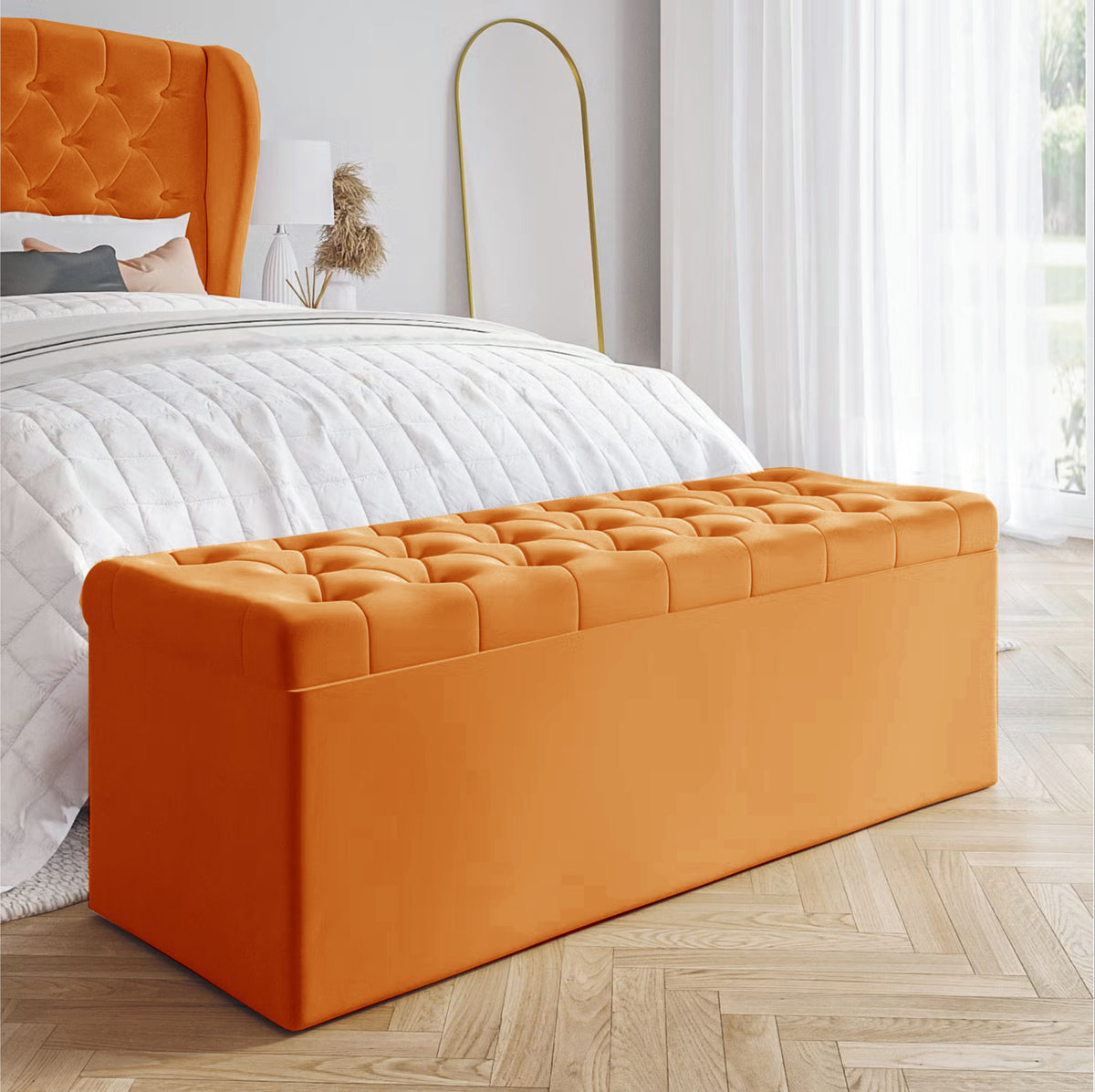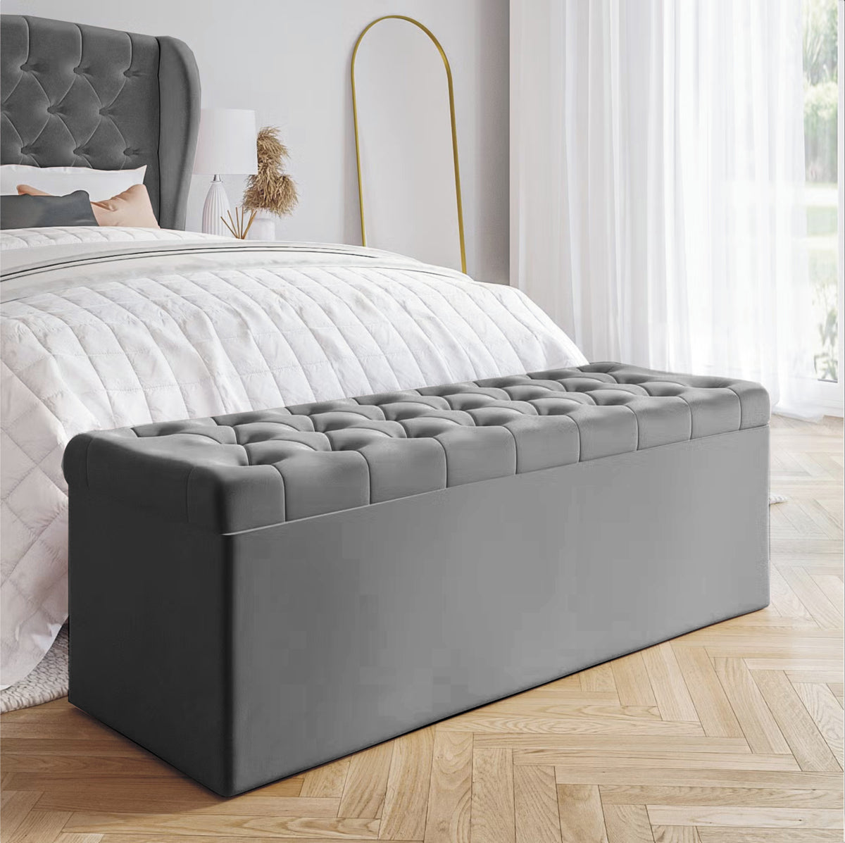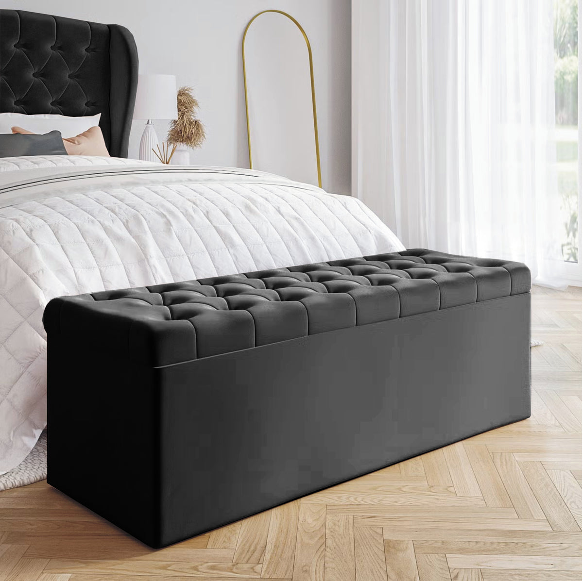 Comfortable Tufted Lid: The tufted lid is padded with extra thick foam, offering a comfortable seating area for relaxation or entertaining guests, making it ideal for use as a bench or additional seating option.