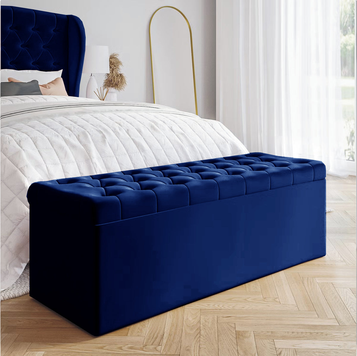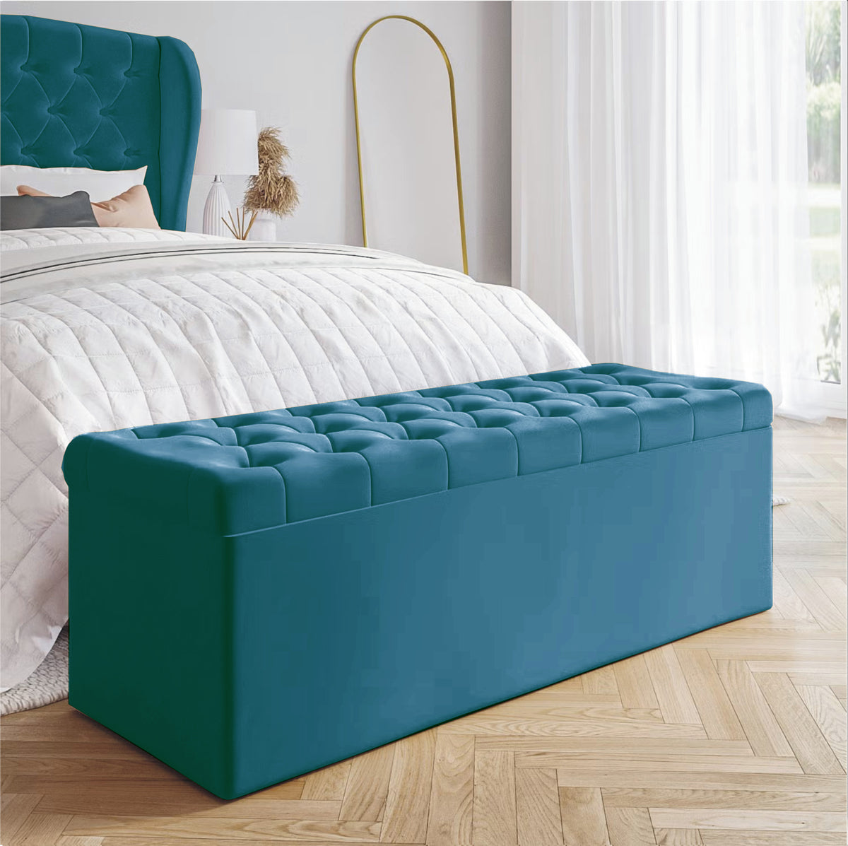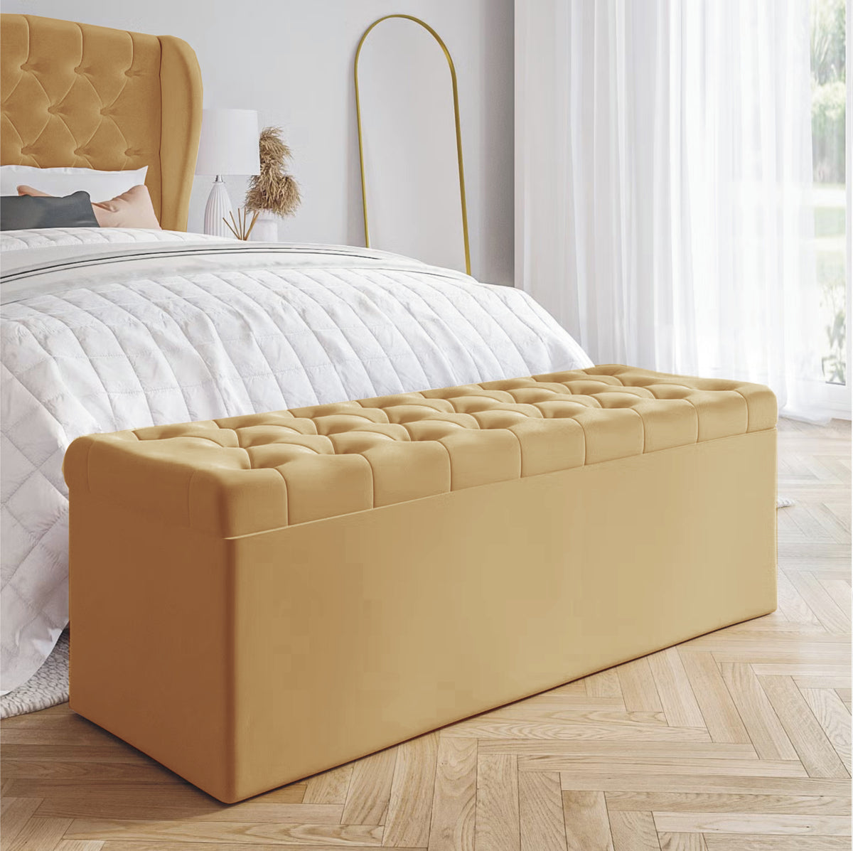 Comfortable Tufted Lid: The tufted lid is padded with extra thick foam, offering a comfortable seating area for relaxation or entertaining guests, making it ideal for use as a bench or additional seating option.
