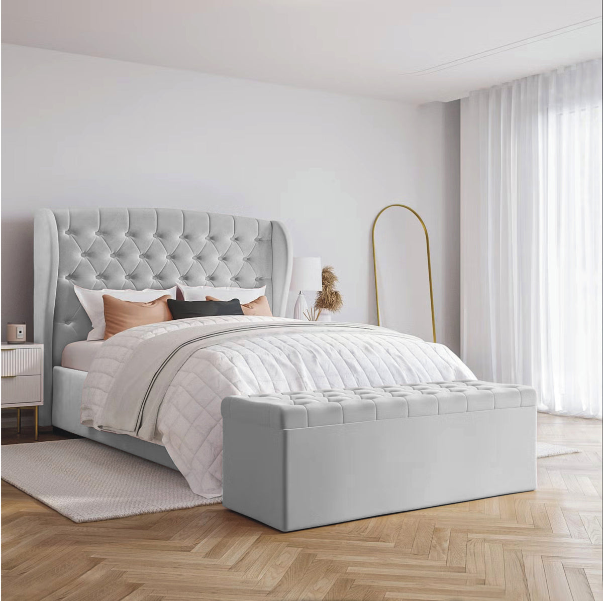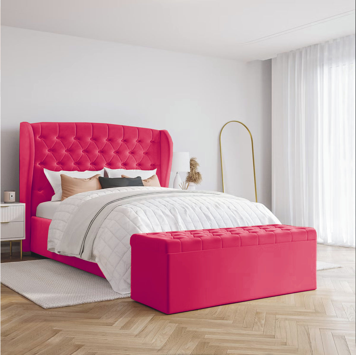 Classic Chesterfield Design: Adorned with Chesterfield upholstery and matching fabric buttons, this ottoman exudes timeless charm and style, elevating the aesthetic of any room.