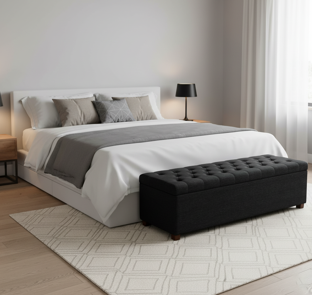 Hinged Lid with Side Holders: The ottoman features a hinged lid that opens effortlessly, providing easy access to the storage compartment. The side holders ensure the lid stays securely in place when open, adding an extra layer of convenience and safety.