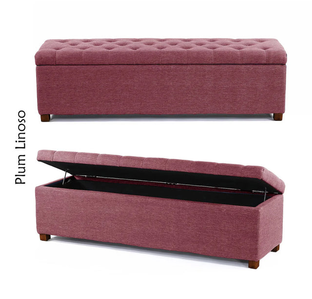 Linoso Chesterfield Ottoman Storage Box with Legs - Plum Linoso / 3ft (90Wx40Dx45H)CM is backordered and will ship as soon as it is back in stock.