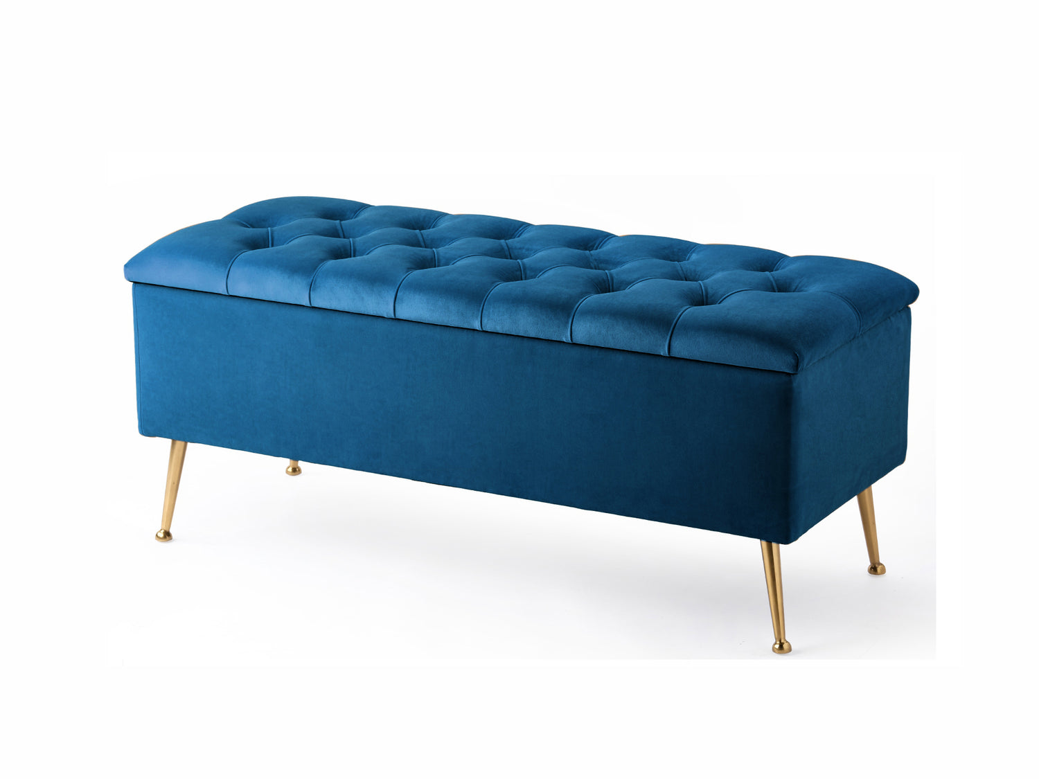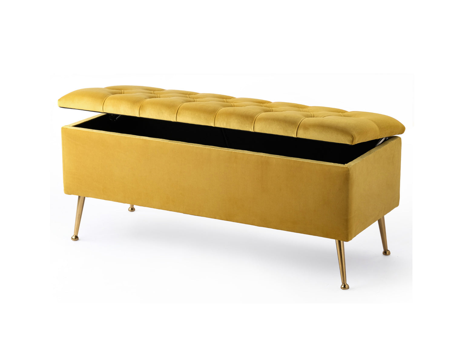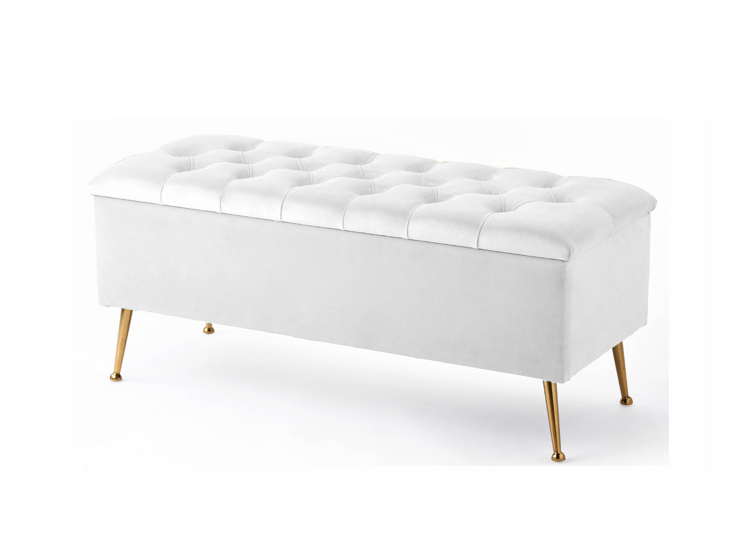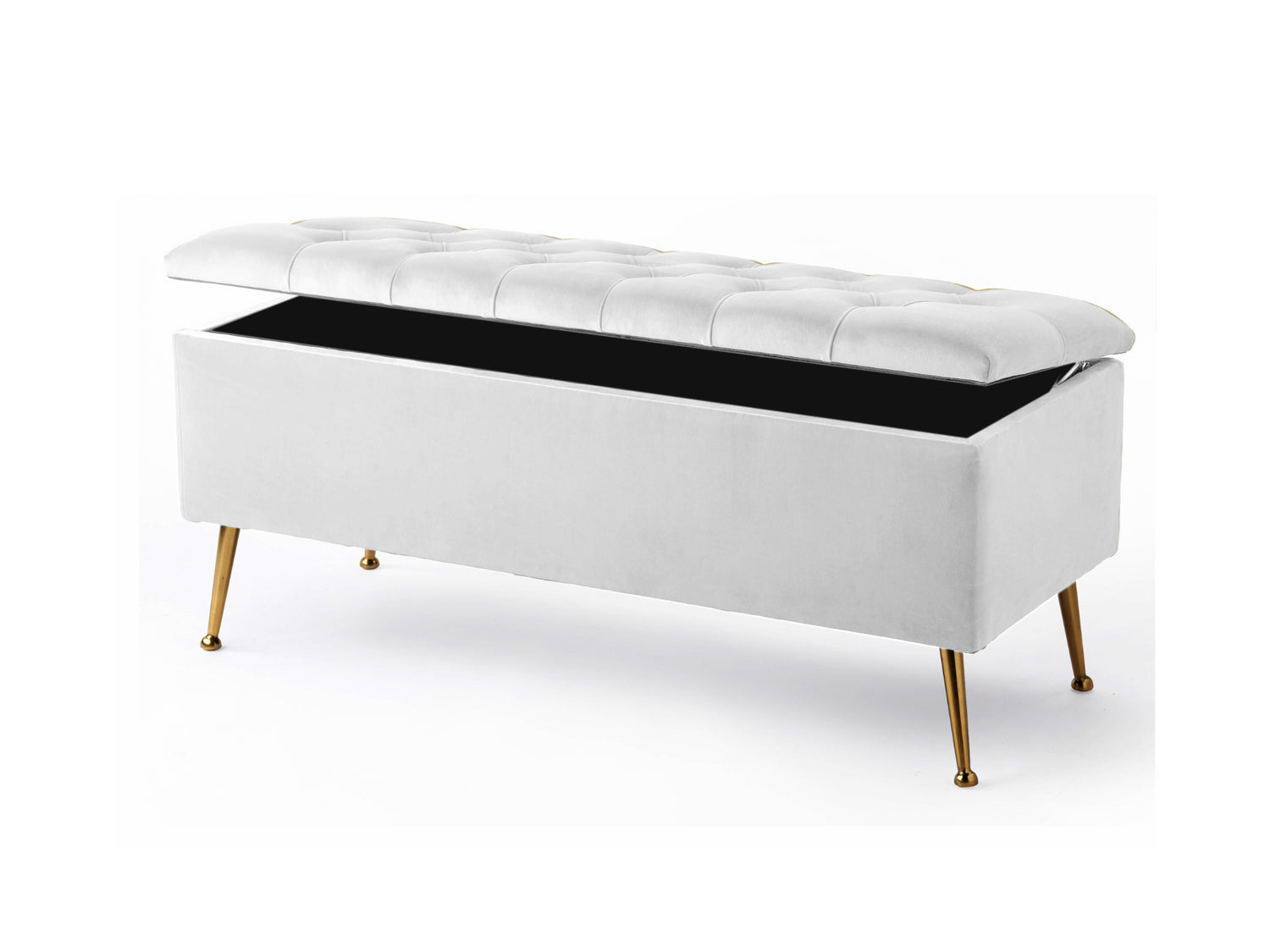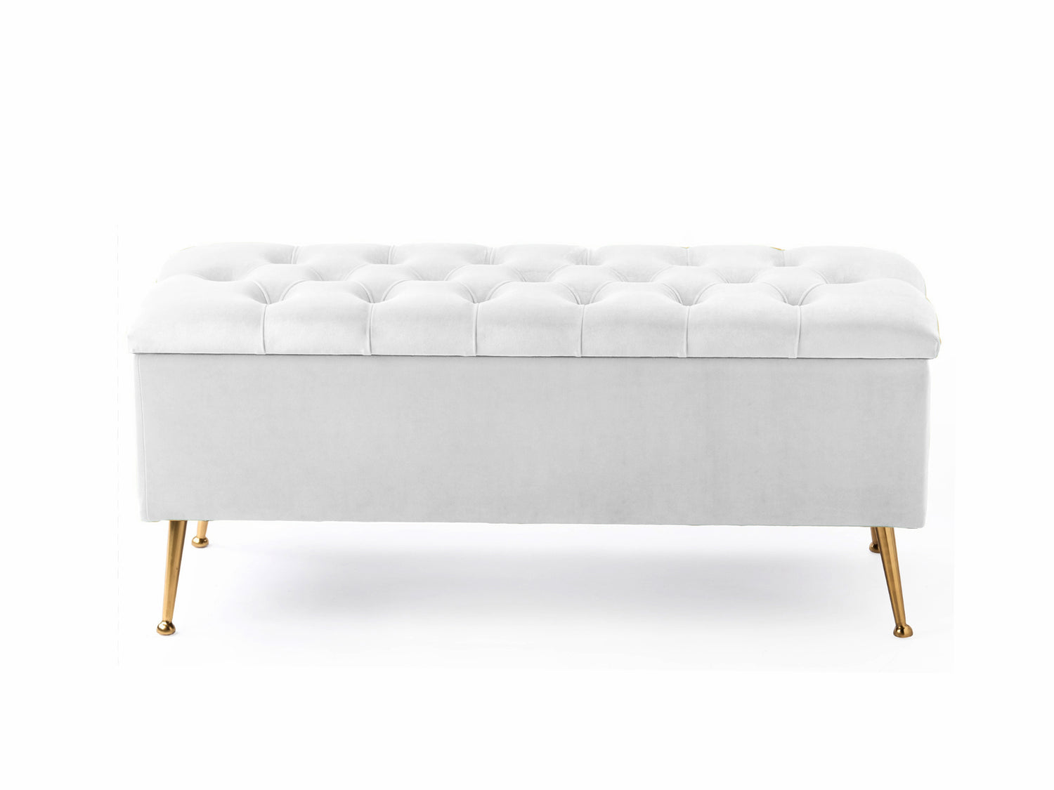 Our Ottoman Storage Bench, a perfect blend of style and function for your home. Upholstered in luxurious plush velvet, this bench adds a touch of elegance to any room. With its sturdy metal legs, it offers stability and durability, ensuring it lasts for years to come.