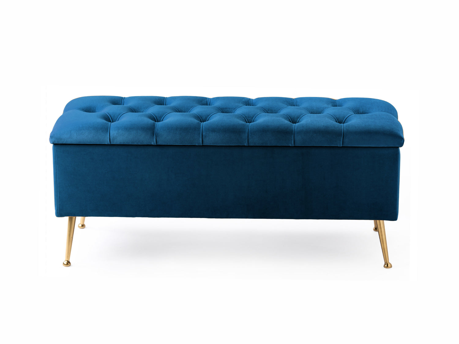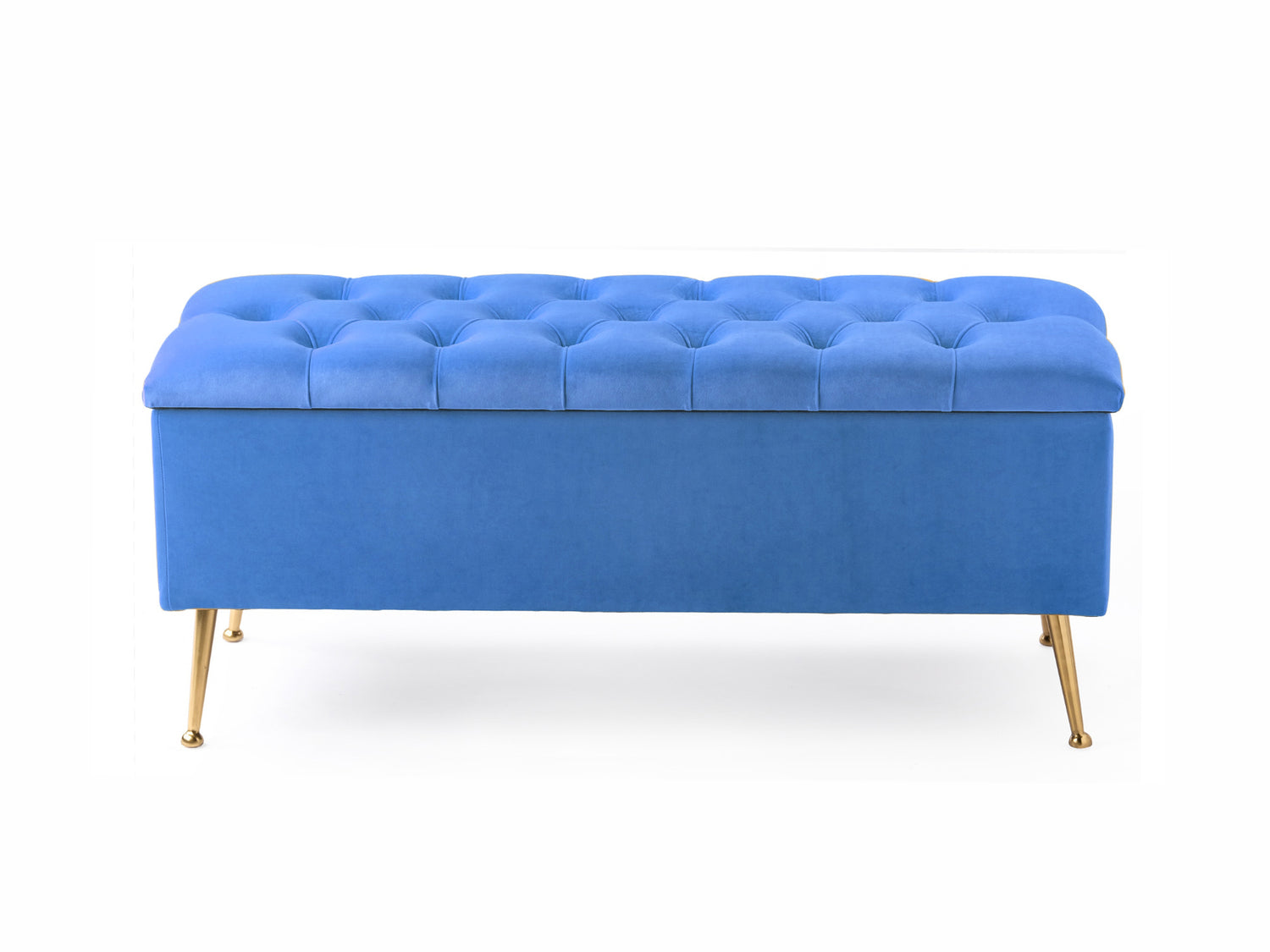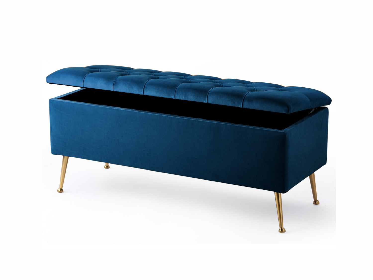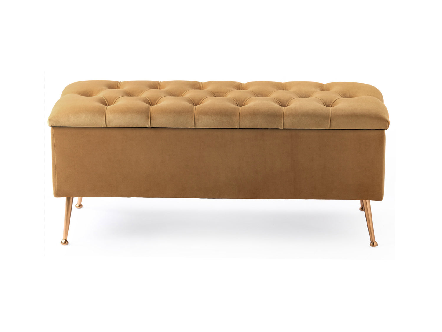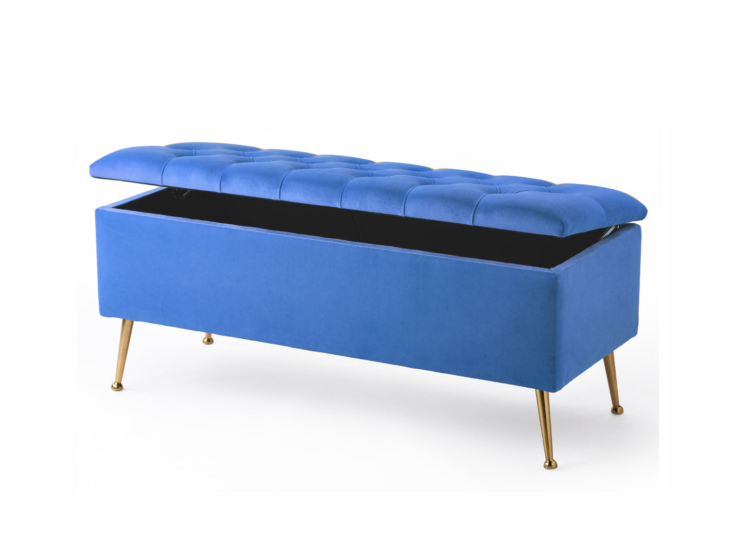 Our Ottoman Storage Bench, a perfect blend of style and function for your home. Upholstered in luxurious plush velvet, this bench adds a touch of elegance to any room. With its sturdy metal legs, it offers stability and durability, ensuring it lasts for years to come.