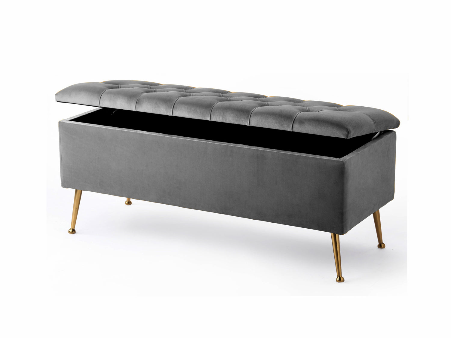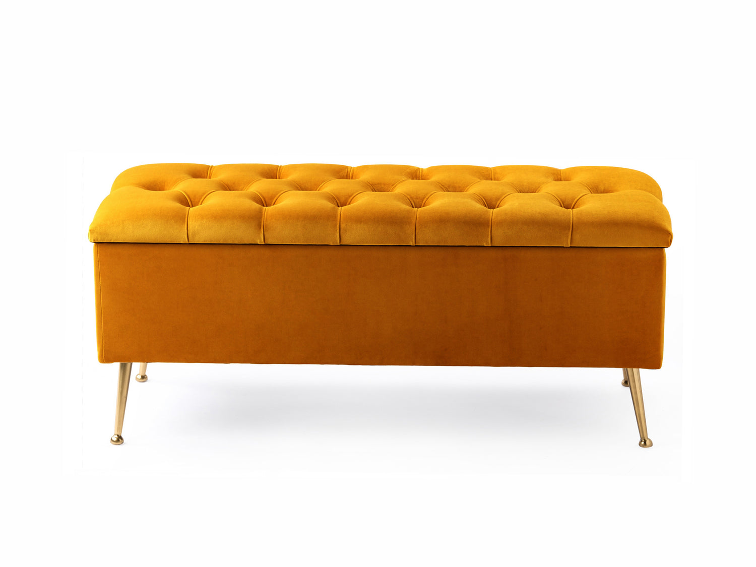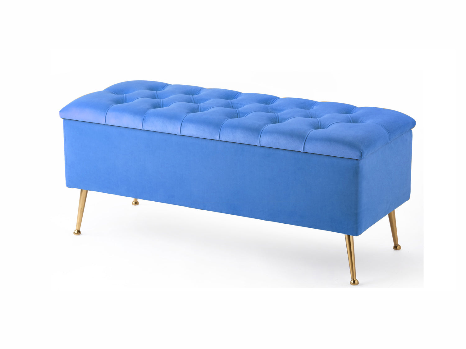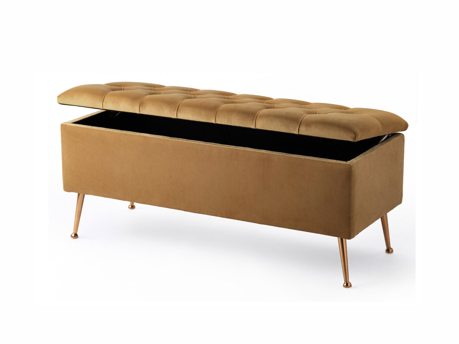 Our Ottoman Storage Bench, a perfect blend of style and function for your home. Upholstered in luxurious plush velvet, this bench adds a touch of elegance to any room. With its sturdy metal legs, it offers stability and durability, ensuring it lasts for years to come.