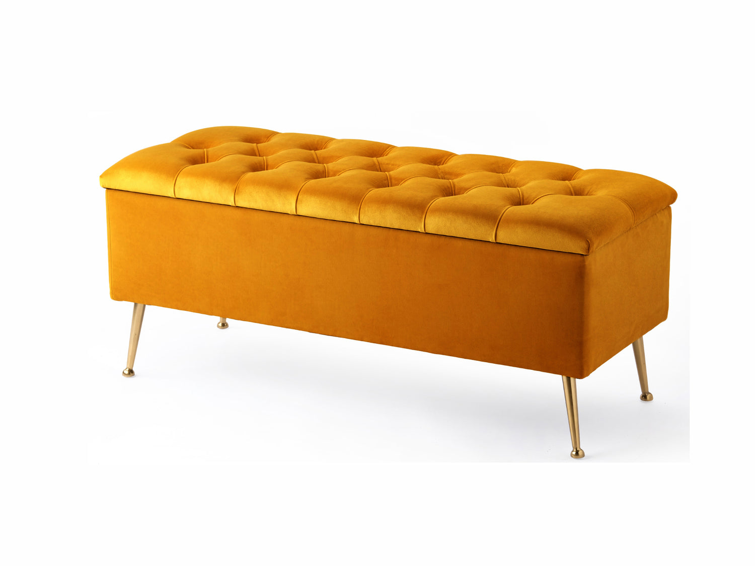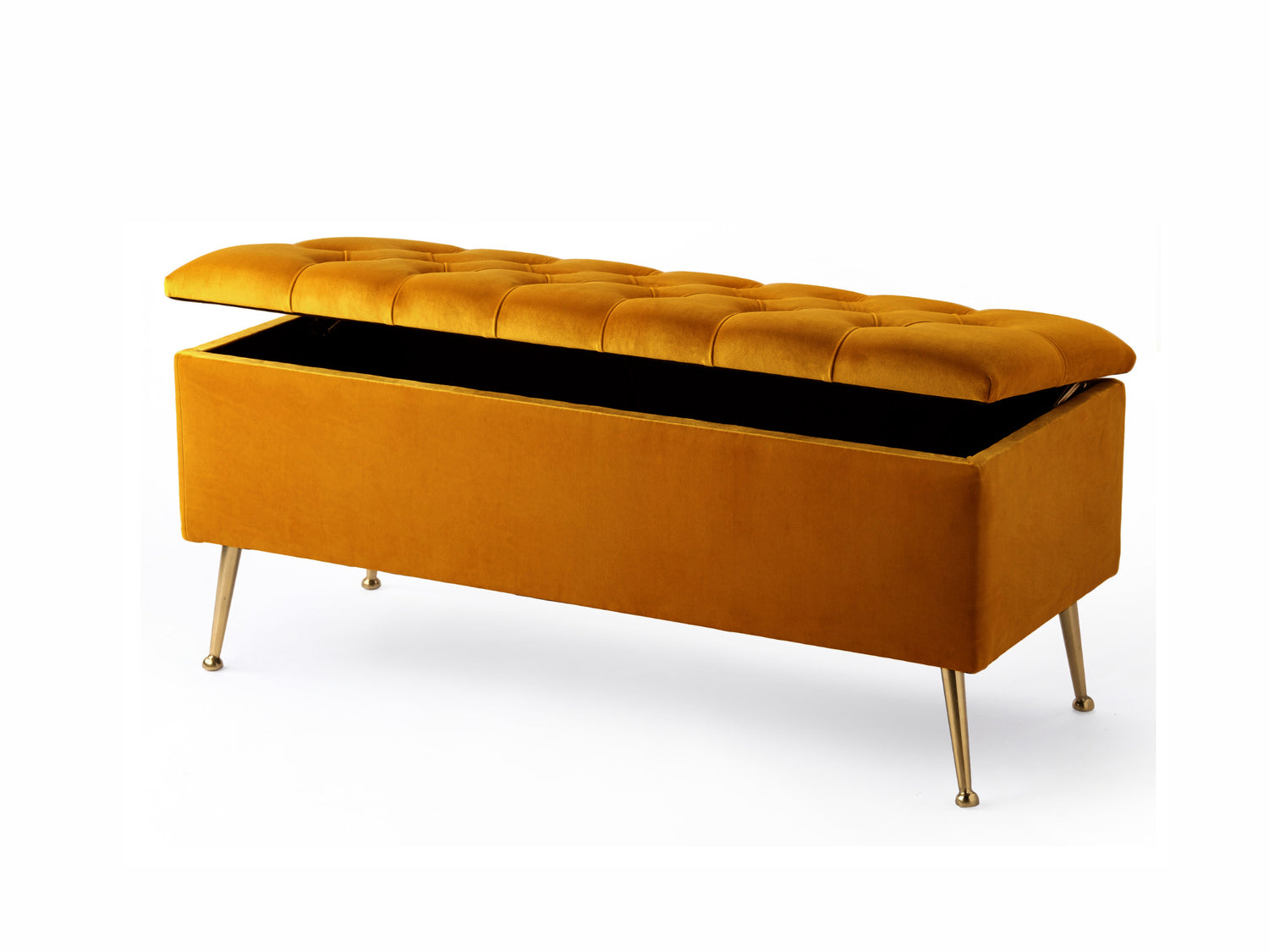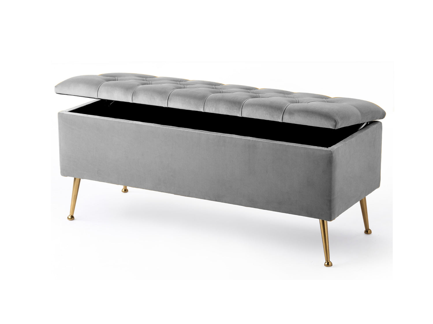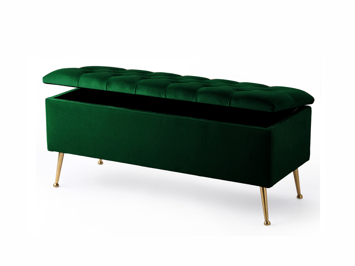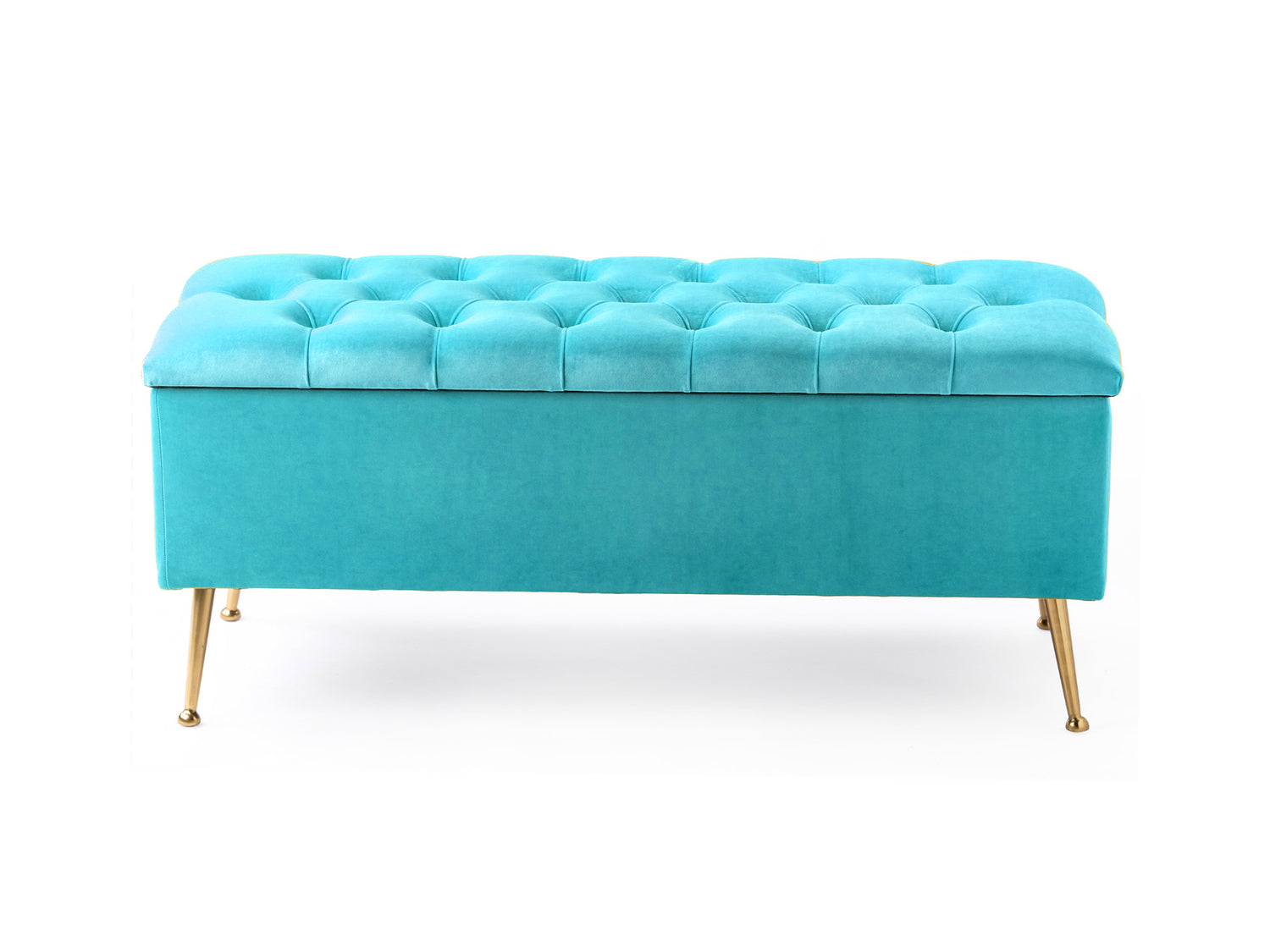 Our Ottoman Storage Bench, a perfect blend of style and function for your home. Upholstered in luxurious plush velvet, this bench adds a touch of elegance to any room. With its sturdy metal legs, it offers stability and durability, ensuring it lasts for years to come.