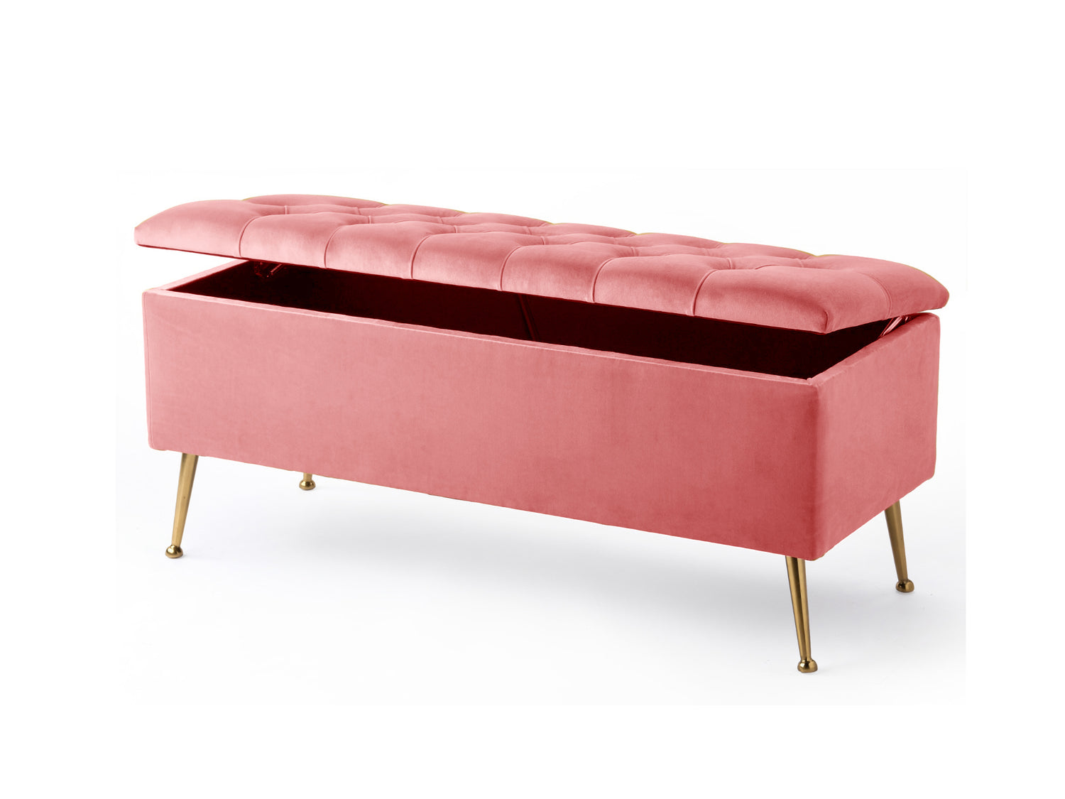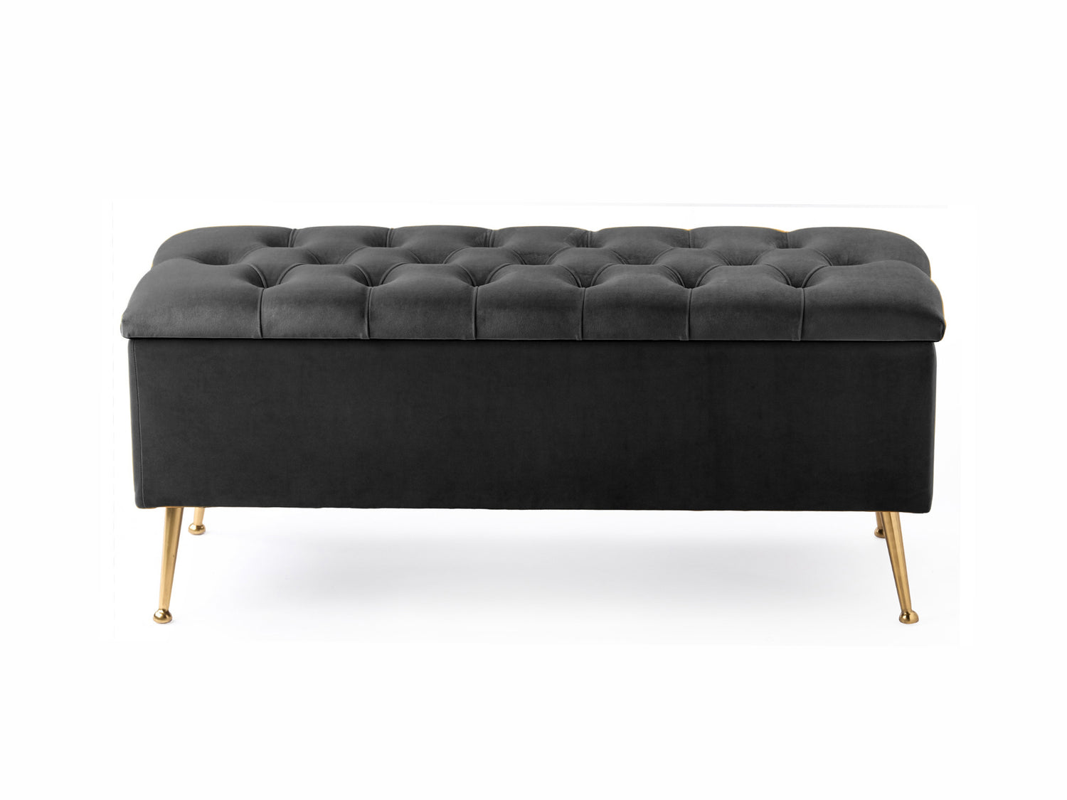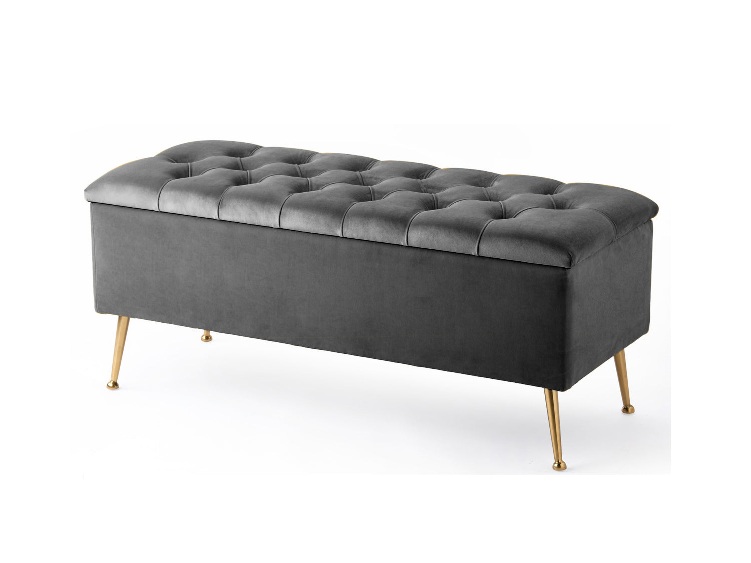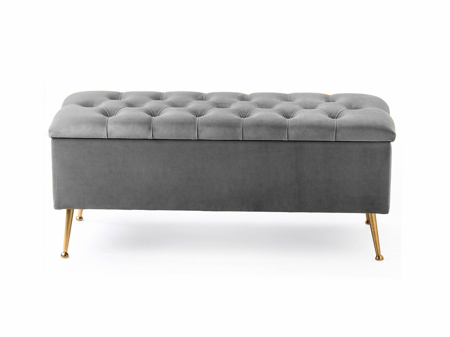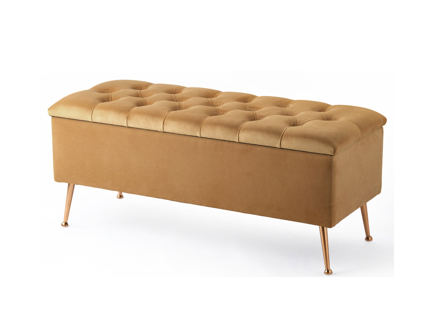 Our Ottoman Storage Bench, a perfect blend of style and function for your home. Upholstered in luxurious plush velvet, this bench adds a touch of elegance to any room. With its sturdy metal legs, it offers stability and durability, ensuring it lasts for years to come.