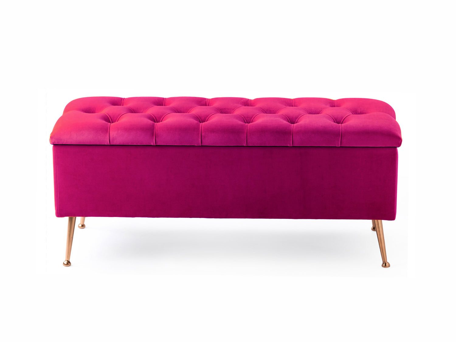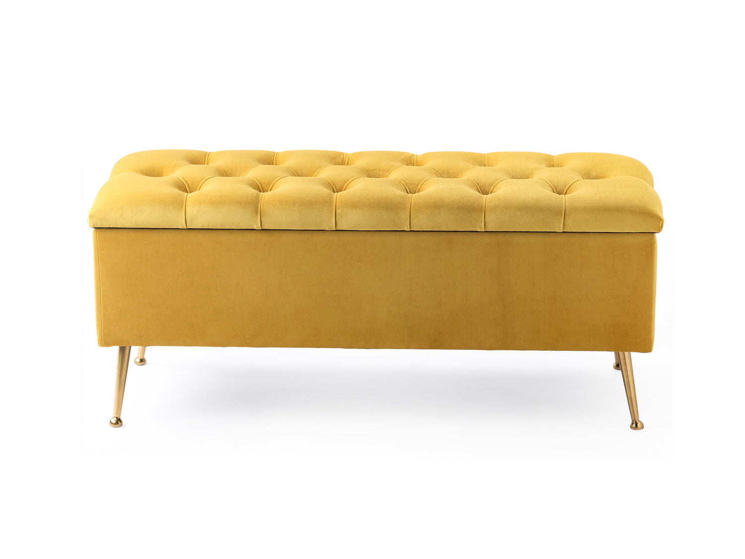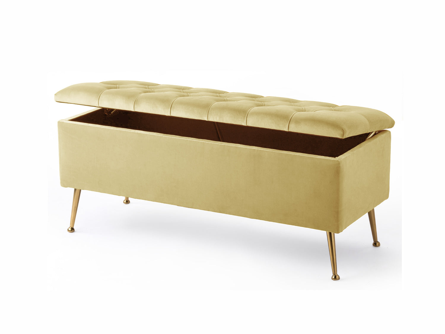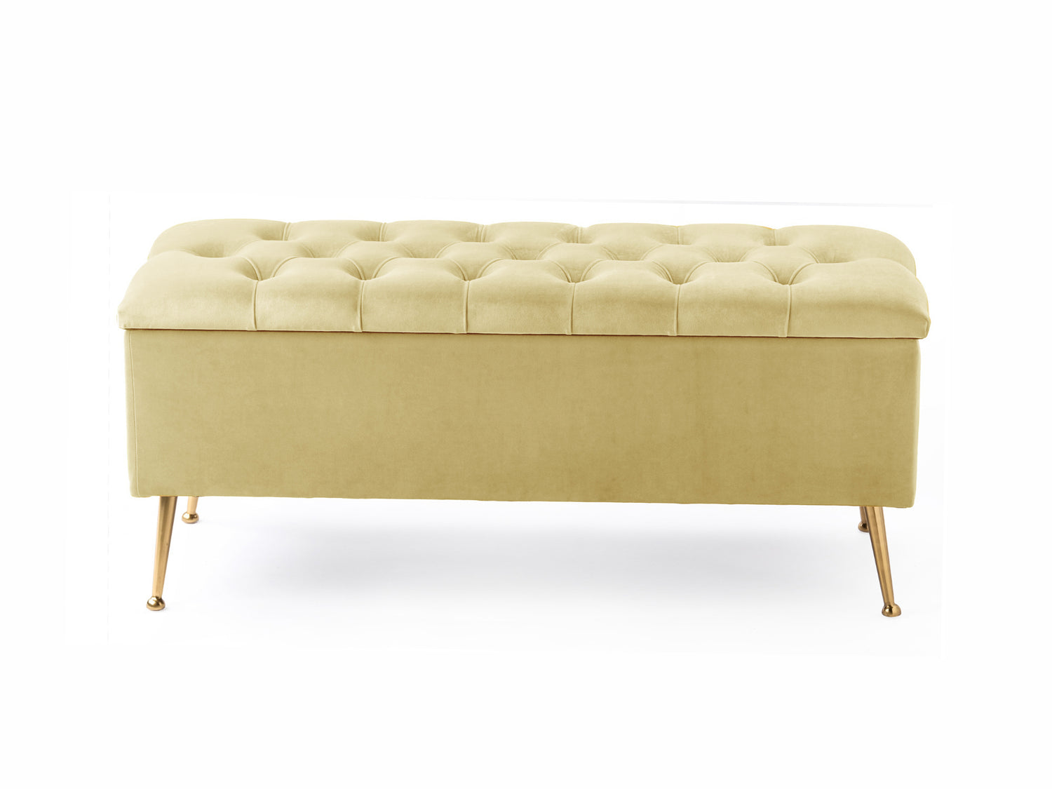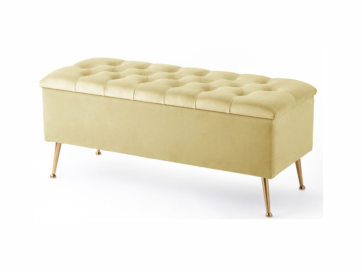 Our Ottoman Storage Bench, a perfect blend of style and function for your home. Upholstered in luxurious plush velvet, this bench adds a touch of elegance to any room. With its sturdy metal legs, it offers stability and durability, ensuring it lasts for years to come.