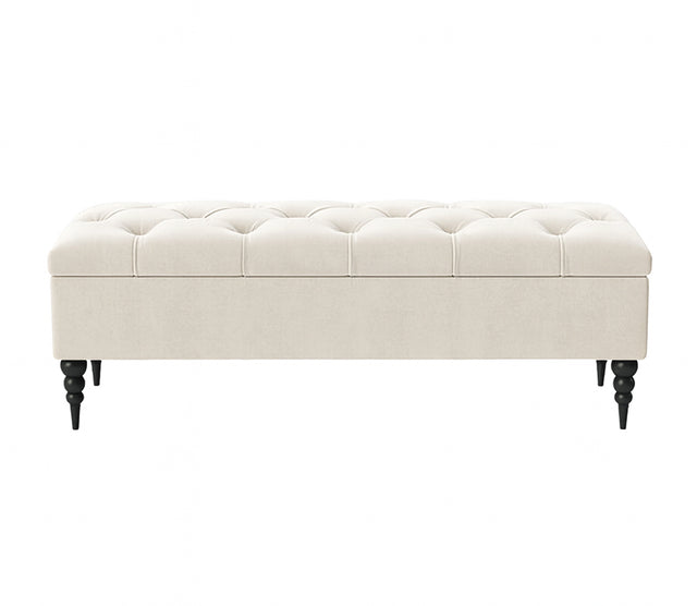 Safar Chesterfield Shoe Storage Bench with Legs - Cream Plush Velvet / 3FT (90Wx40Dx40H)CM is backordered and will ship as soon as it is back in stock.