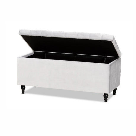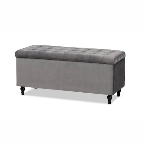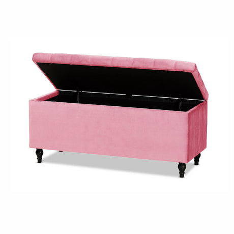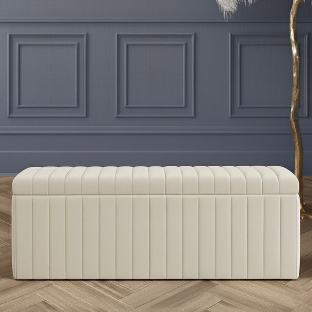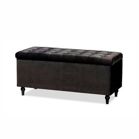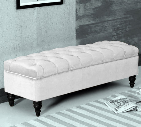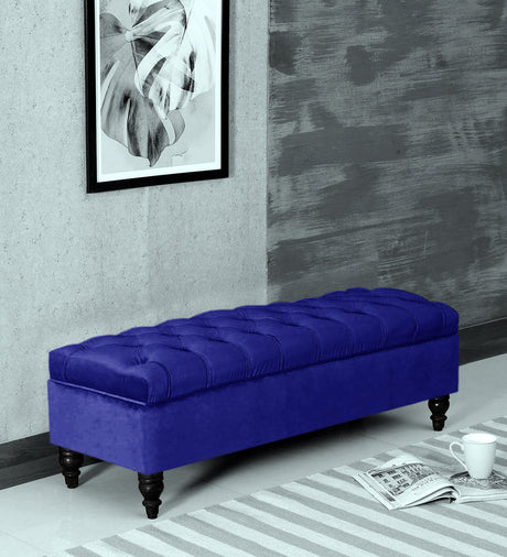Beautifully combines elegance, comfort, and functionality to elevate any living space. Expertly upholstered in premium velvet, it exudes timeless charm while offering versatile use as both a stylish storage solution and a comfortable seating option. The fully lined interior provides ample space to neatly store blankets, cushions, or other essentials, helping keep your home organized and clutter-free. With its soft cushioned lid and refined design, this ottoman storage bench adds a luxurious touch to your décor while enhancing everyday comfort and practicality.
