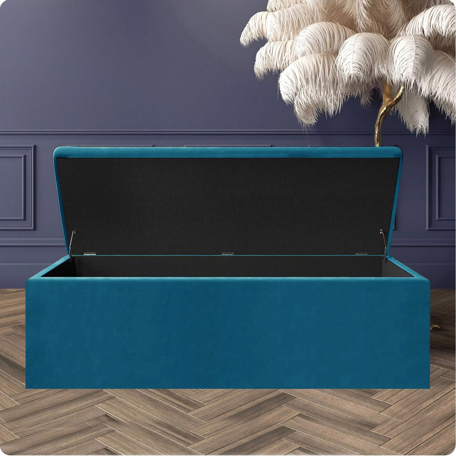 Safar Large Velvet Ottoman Storage Box with Plain Lid - Teal Plush Velvet / 3FT (90Wx40Dx40H)CM is backordered and will ship as soon as it is back in stock.