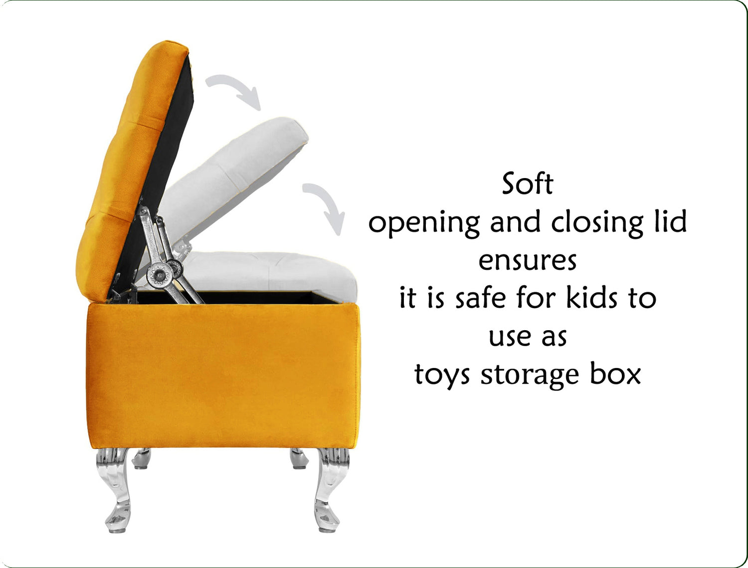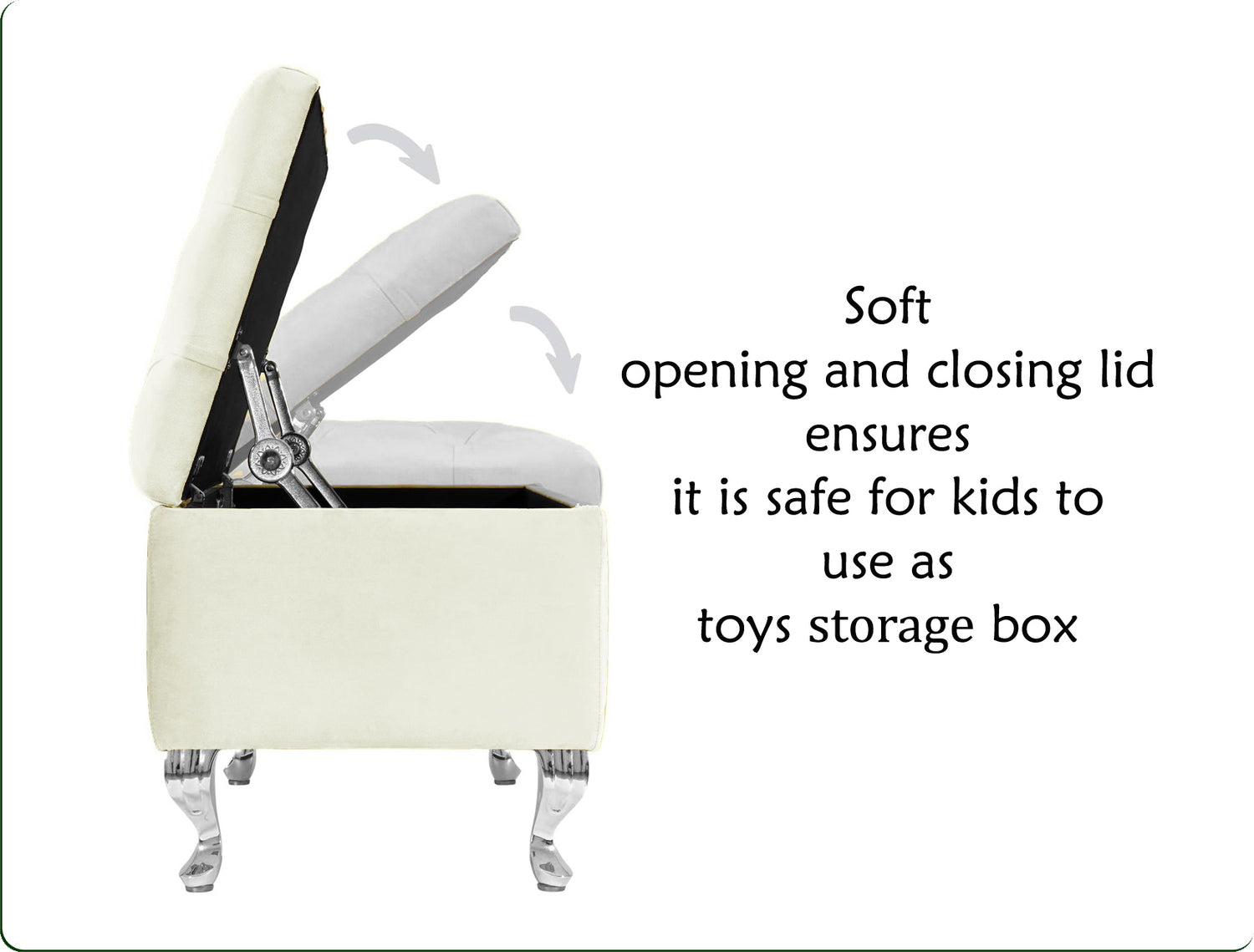 This Chesterfield velvet storage ottoman bench is the perfect combination of deep storage, soft plush velvet upholstery, tufted button detailing, and silver metal legs, making it a standout piece for everyday seating, shoe storage, toy storage, and stylish organisation.