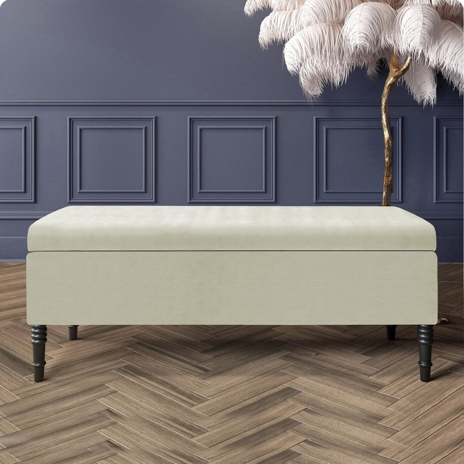 Elevate your home décor with the Paris Naples Upholstered Ottoman Storage Bench. Featuring a plain upholstered design and classic black turned wooden legs, this elegant and versatile piece combines style with functionality, making it an ideal addition to any space.