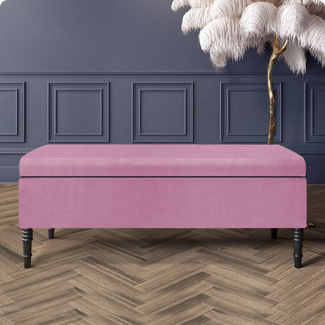 Paris Plush Velvet Plain Upholstered Ottoman Storage Bench with Black Turned Wooden Legs